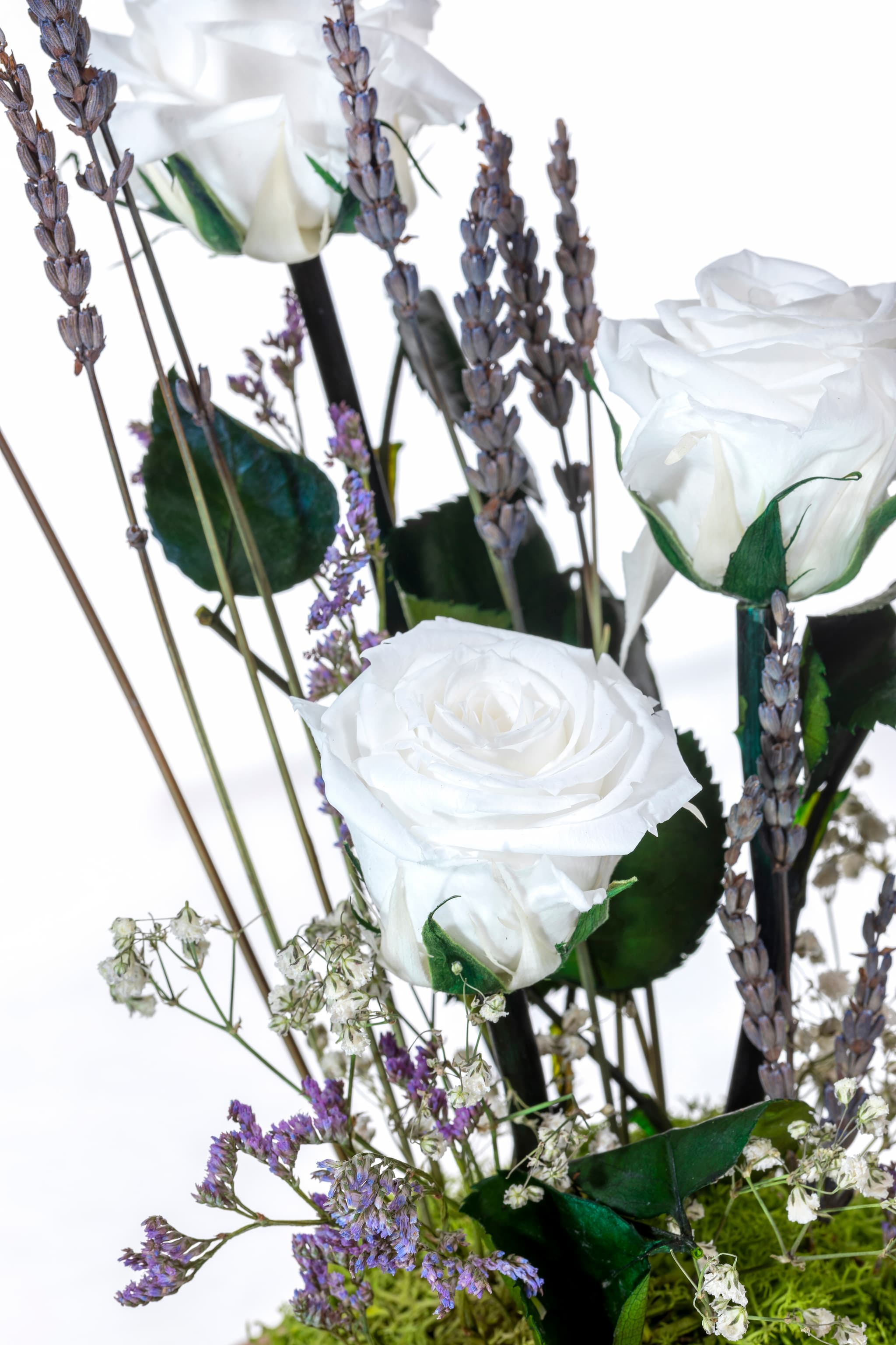 La rosa blanca preservada, o rosa eterna, simboliza la eterna pureza, ya que se mantiene siempre como si estuviera fresca, igual que el primer día.