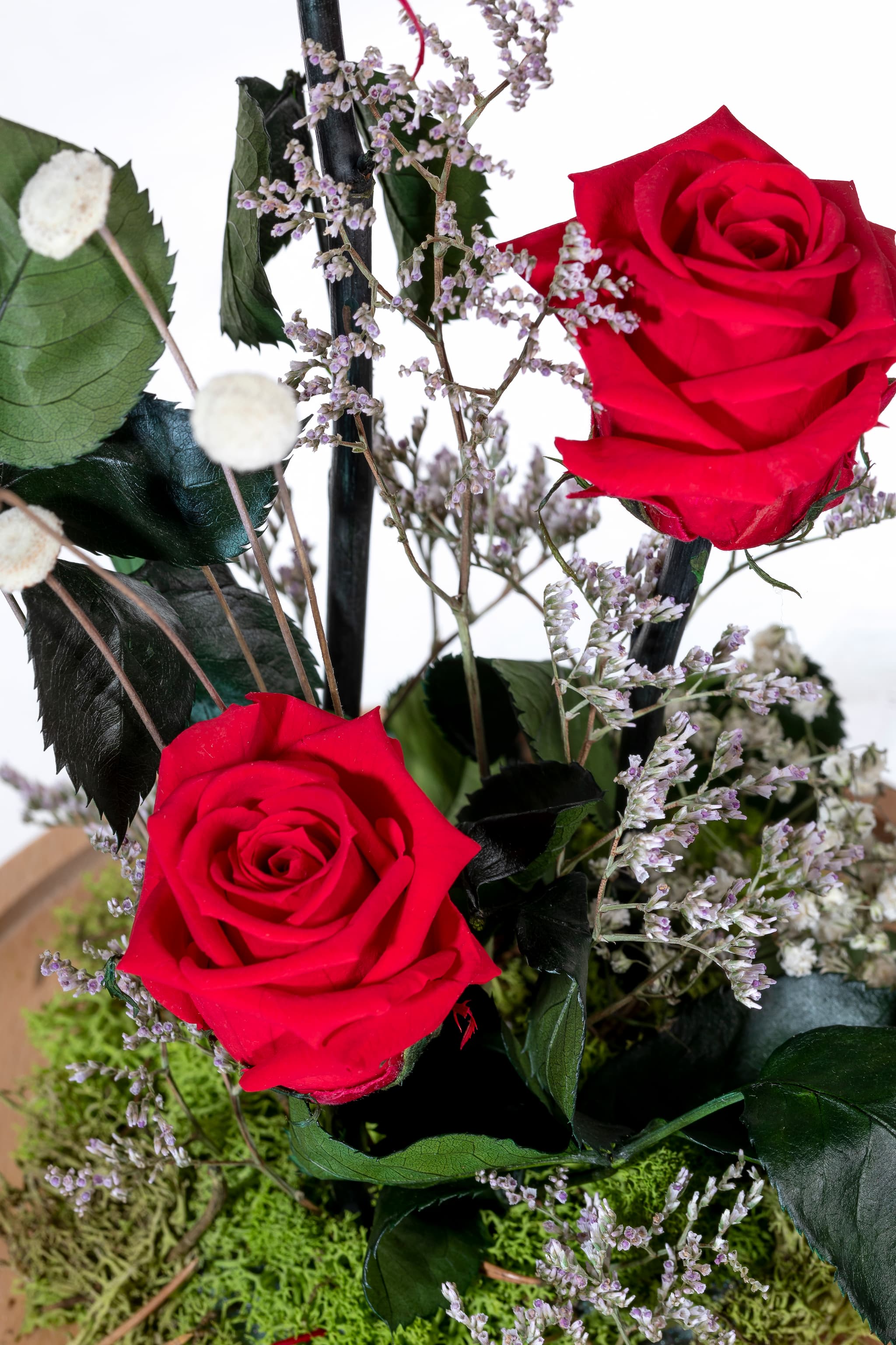 La rosa roja preservada, o rosa eterna, simboliza el amor eterno, ya que se mantiene siempre como si estuviera fresca, igual que el primer día.