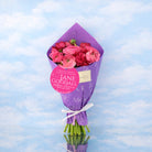 Celebra a las mujeres que inspiran con el ramo Jane Goodall, parte de nuestra campaña “Flores que inspiran, mujeres que florecen”. Este arreglo combina ranúnculos rosa con papel morado, transmitiendo ternura y respeto por la vida, cualidades que definieron a Jane Goodall y su legado.
