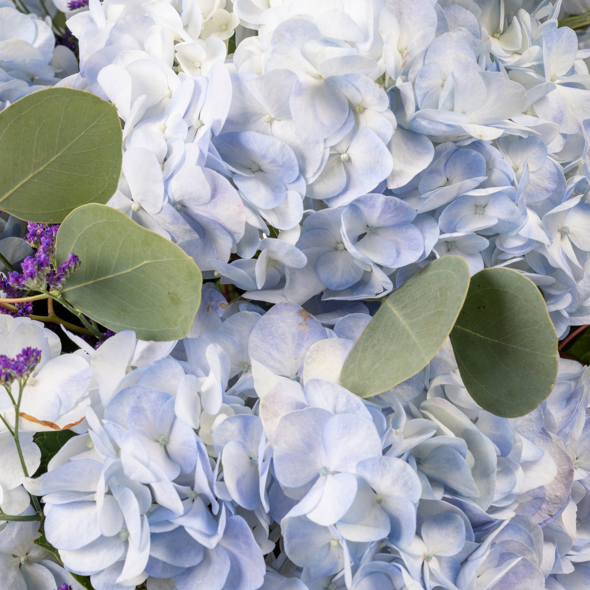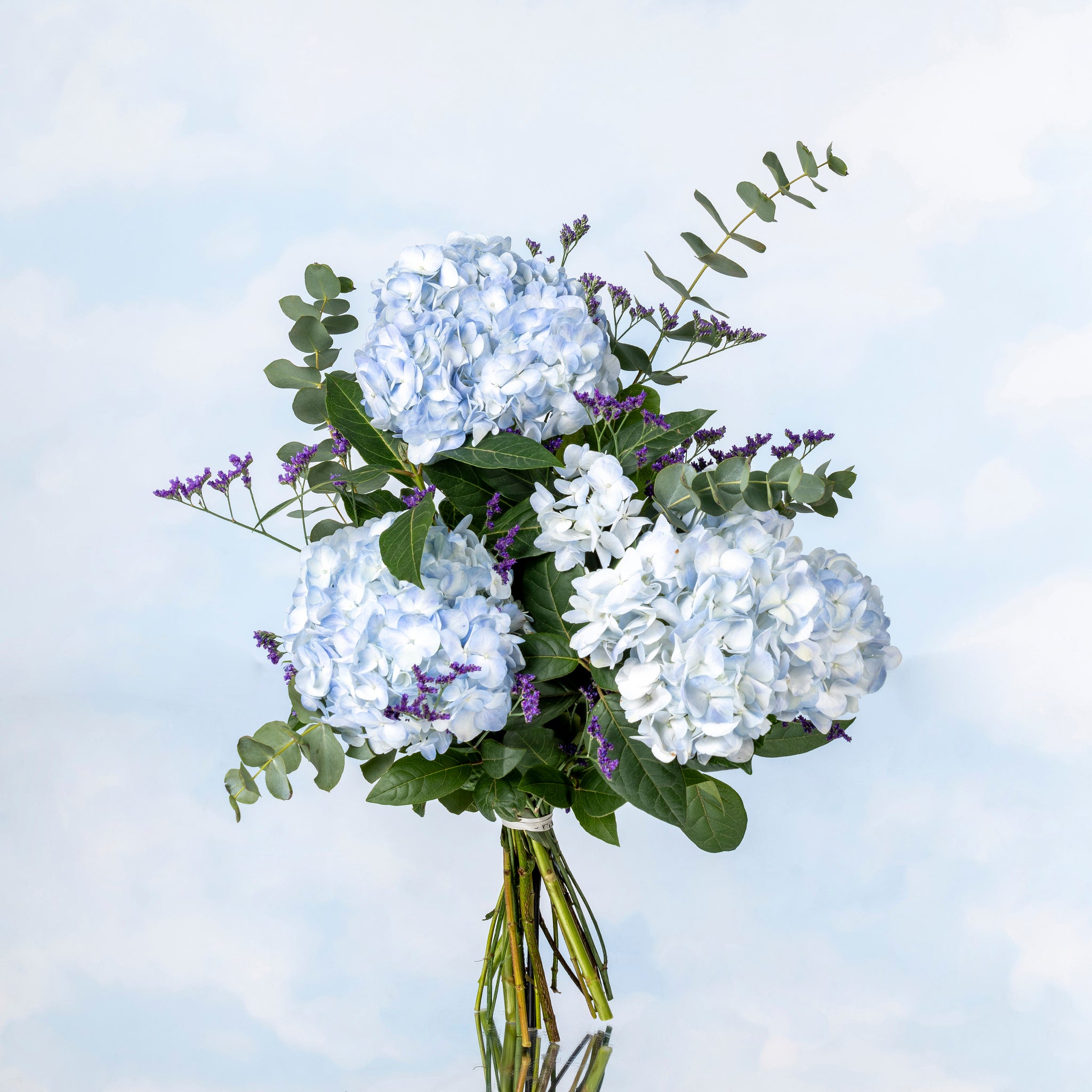 Ramo compuesto de HORTENSIAS AZULADAS y flores silvestres que se mezclan con el verde del eucalipto para conseguir un ramo original y de colores brillantes que será perfecto alegrar cualquier ocasión o simplemente para decorar algún rincón de tu casa. Te encantador regalar este ramo de flores frescas y colores suaves que transmite fuerza, serenidad y equilibrio. Siempre elaborado con las flores más frescas para asegurar la máxima duración de nuestros ramos. Preparado, envuelto y asegurado por nuestros expertos floristas para que no sufran desperfectos durante el transporte.