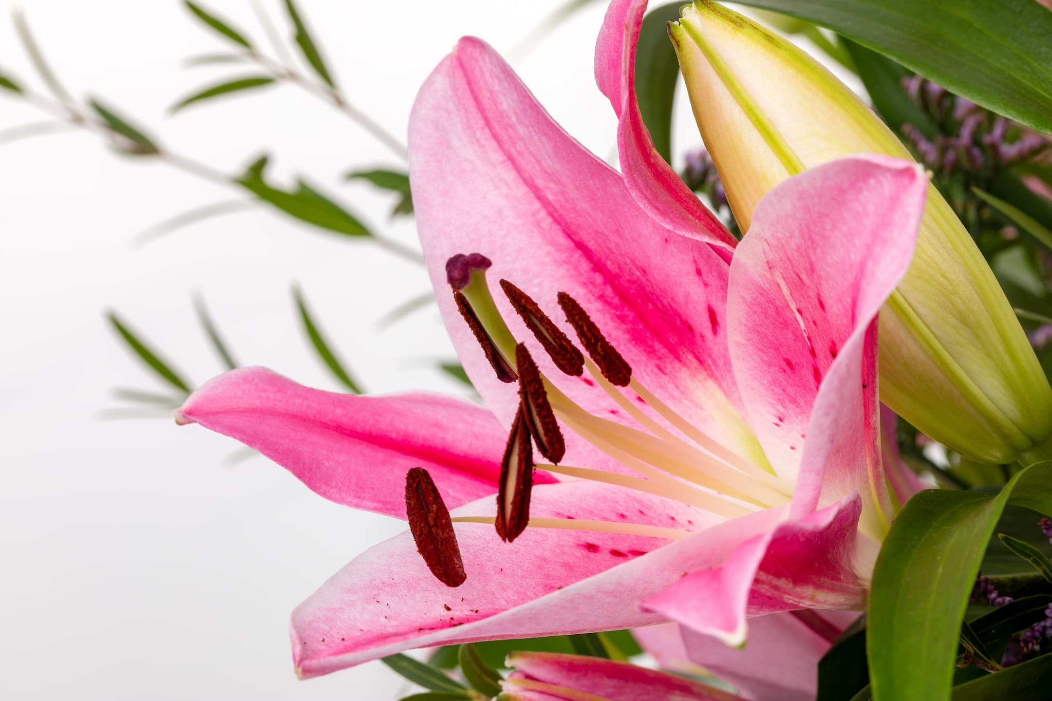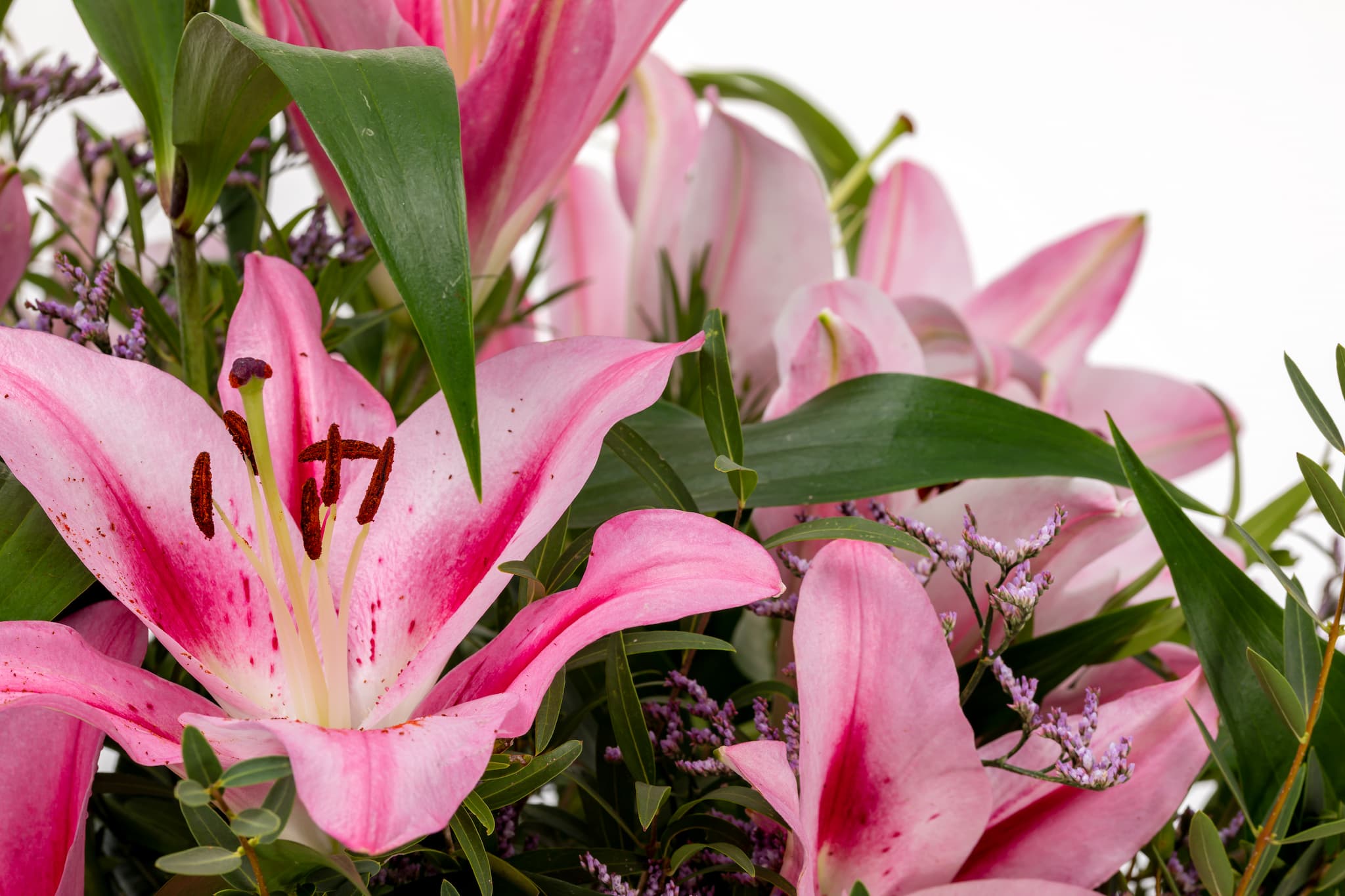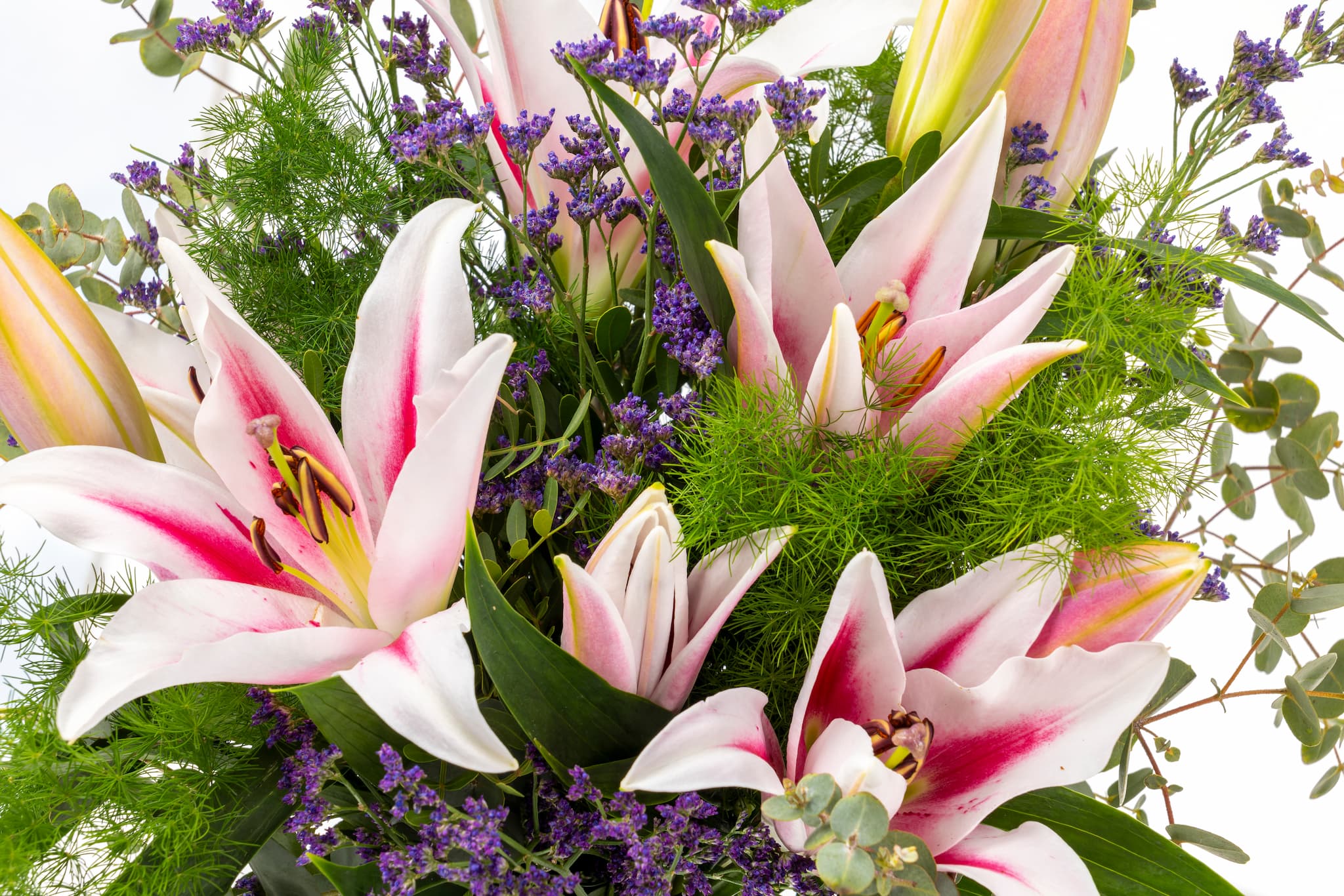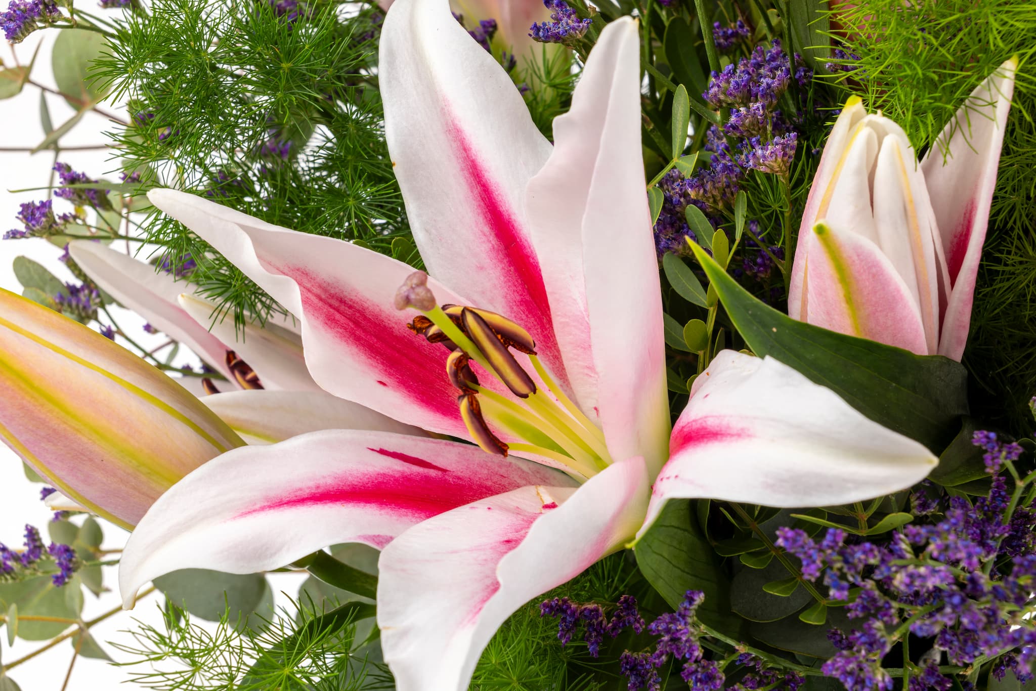 Sus delicados pétalos y suave aroma de estos Lilium aportan una sensación de serenidad y elegancia que resalta la belleza añadiendo un toque fresco y natural al ramo.