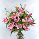 Este maravilloso arreglo floral está compuesto por elegantes Lilium Oriental rosados, cuidadosamente seleccionados para crear una sinfonía de color y fragancia que cautiva los sentidos.