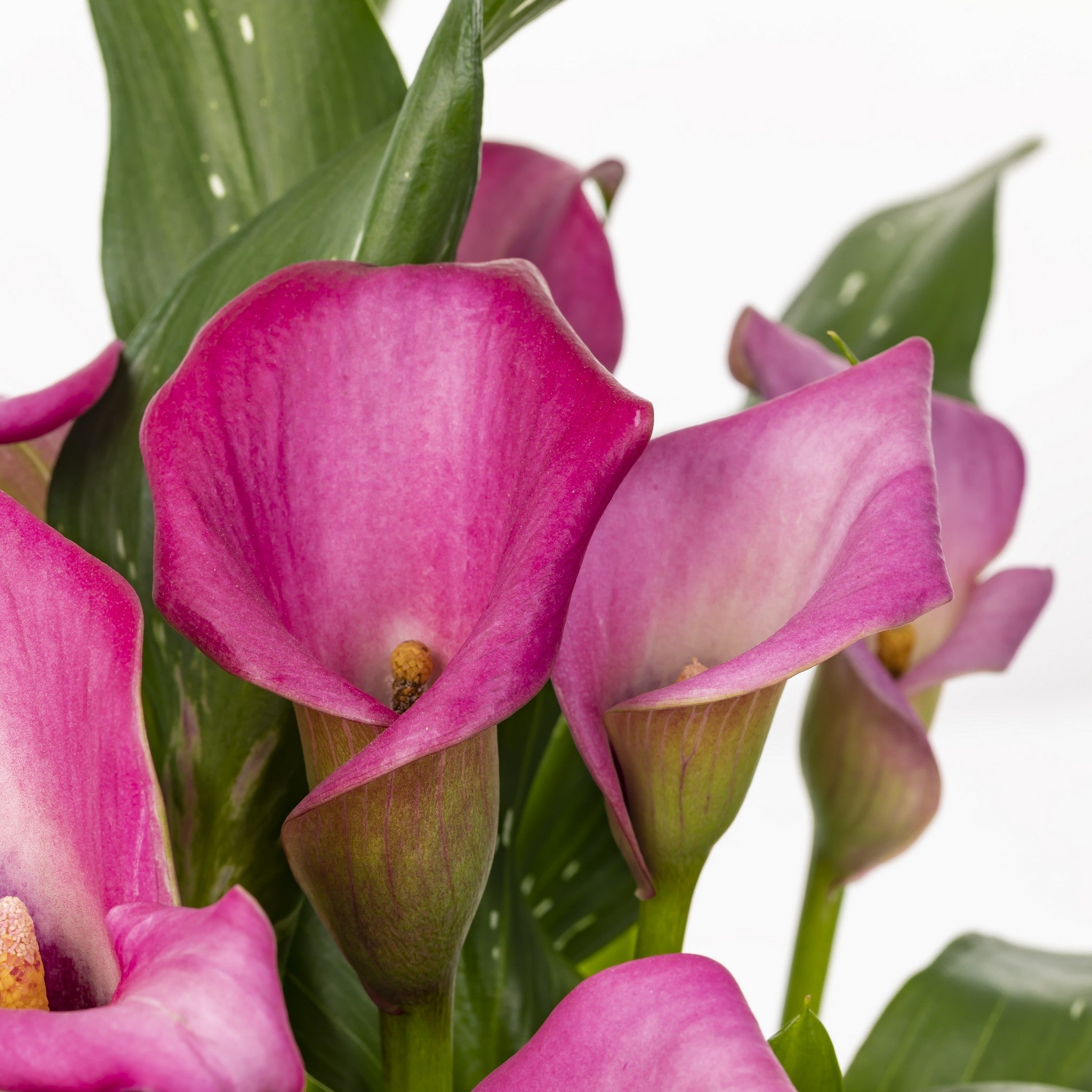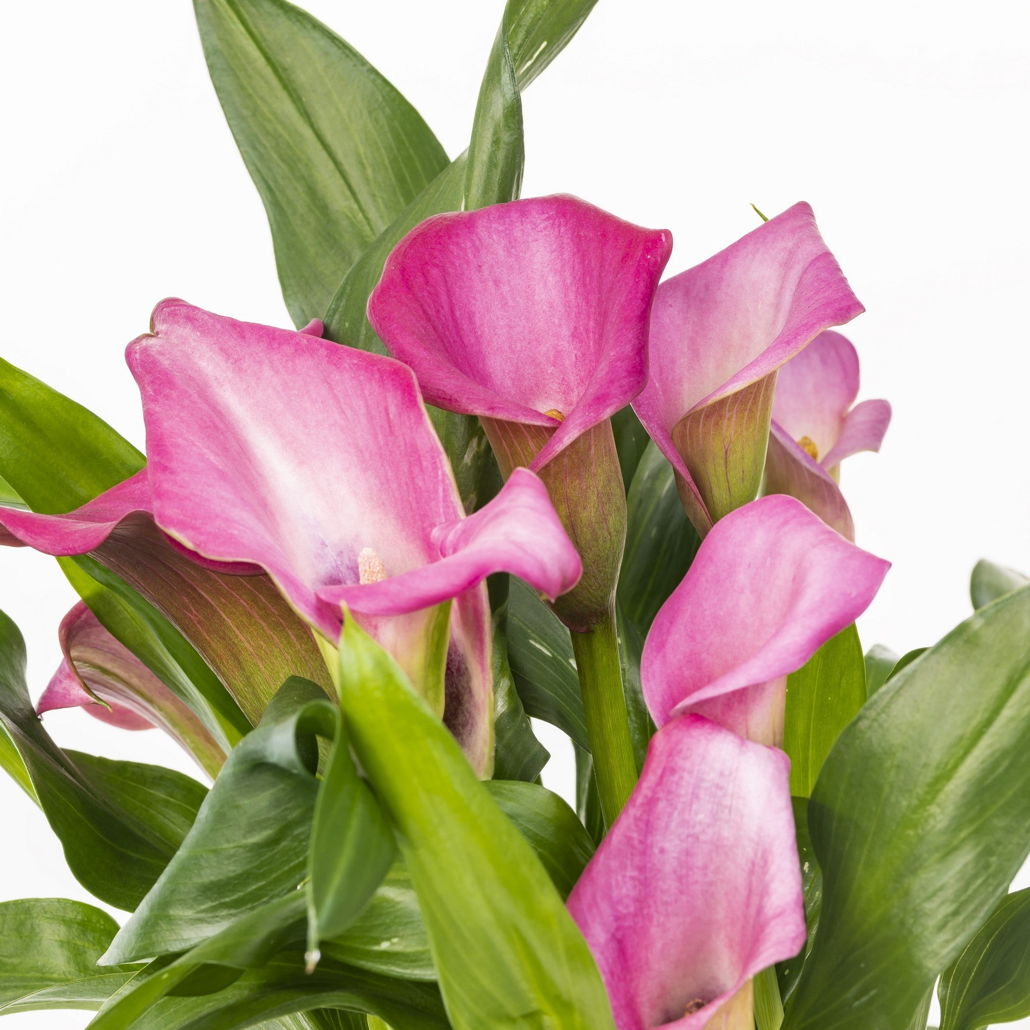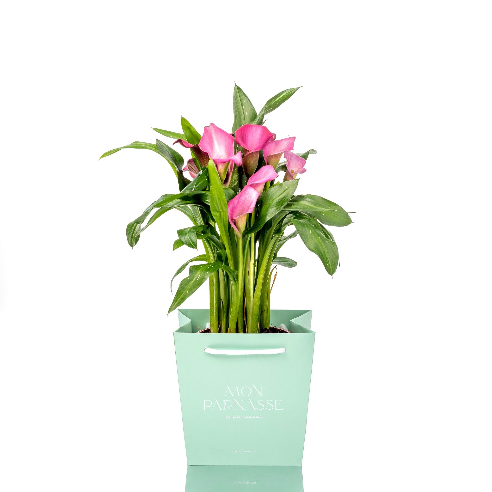 La cala rosa es una planta delicada y elegante que aporta un toque suave y romántico a cualquier espacio. Sus flores estilizadas y su color sutil crean un ambiente acogedor y lleno de armonía.
