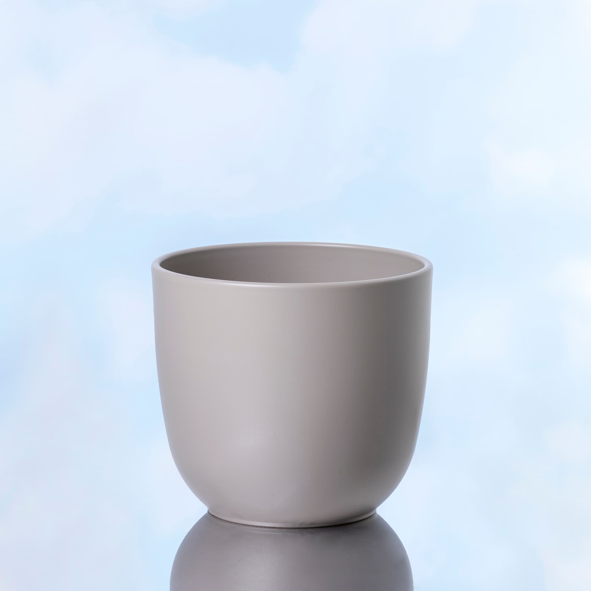 Macetero de cerámica en color taupe mate.