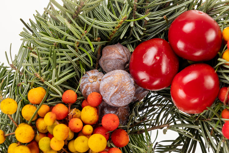 Las Coronas de Frutos de Navidad de Mon Parnasse son una propuesta decorativa vibrante, natural y llena de carácter. Elaboradas a mano con ramas frescas de abeto, estas coronas destacan por su original combinación de frutos decorativos de temporada, bayas y texturas que evocan la abundancia navideña y el espíritu acogedor de estas fechas.