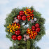 Cada modelo incorpora elementos naturales seleccionados cuidadosamente por nuestros floristas: frutos rojos brillantes, bayas y pequeños conos decorativos.