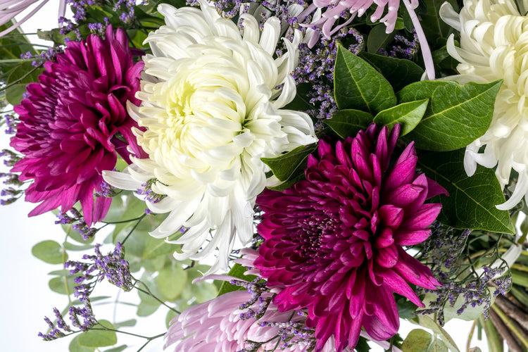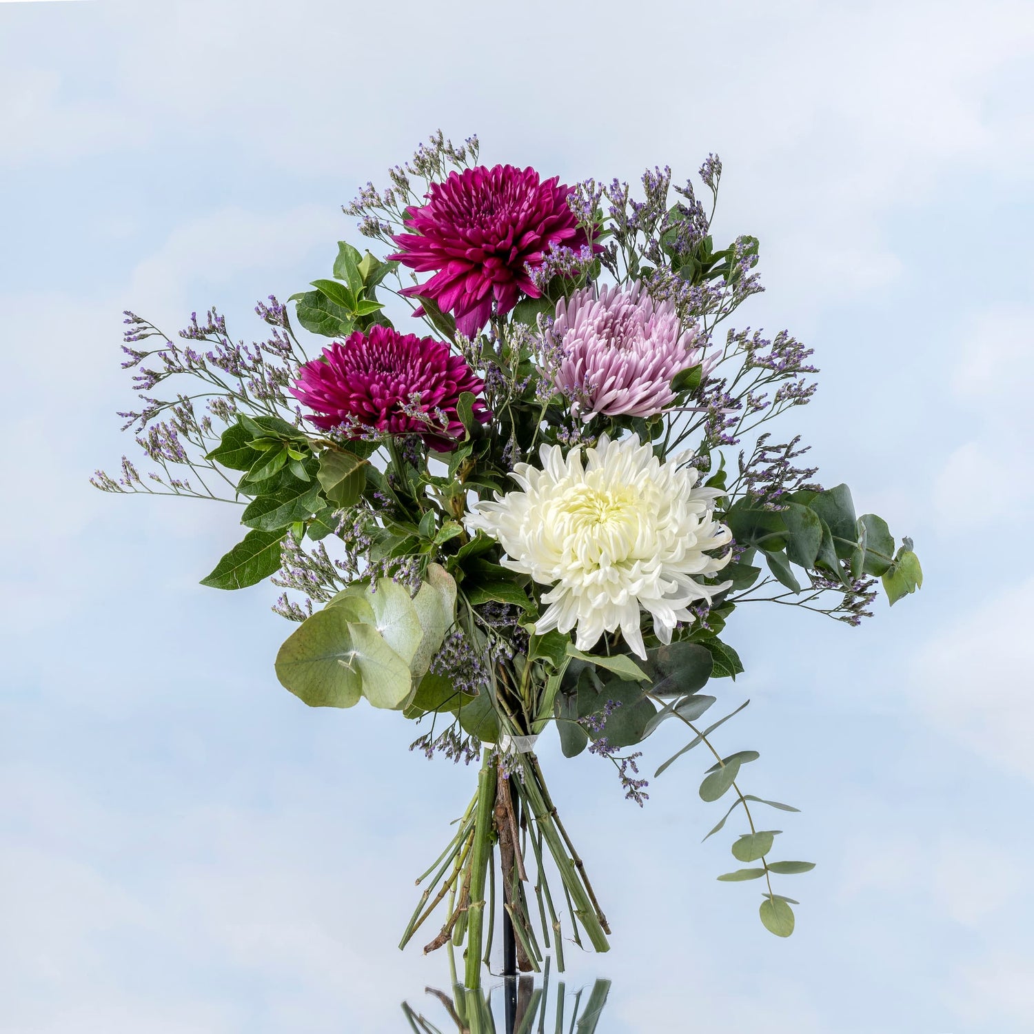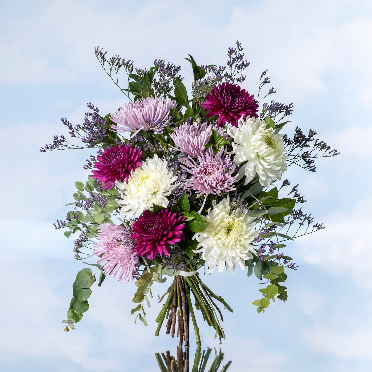 Nuestro ramo "Dulce ensueño" es una explosión de color y romanticismo. Los crisantemos blancos y lilas se entrelazan con delicados tonos rosados, creando una composición floral única y sofisticada. Perfecto para expresar tus sentimientos más profundos.