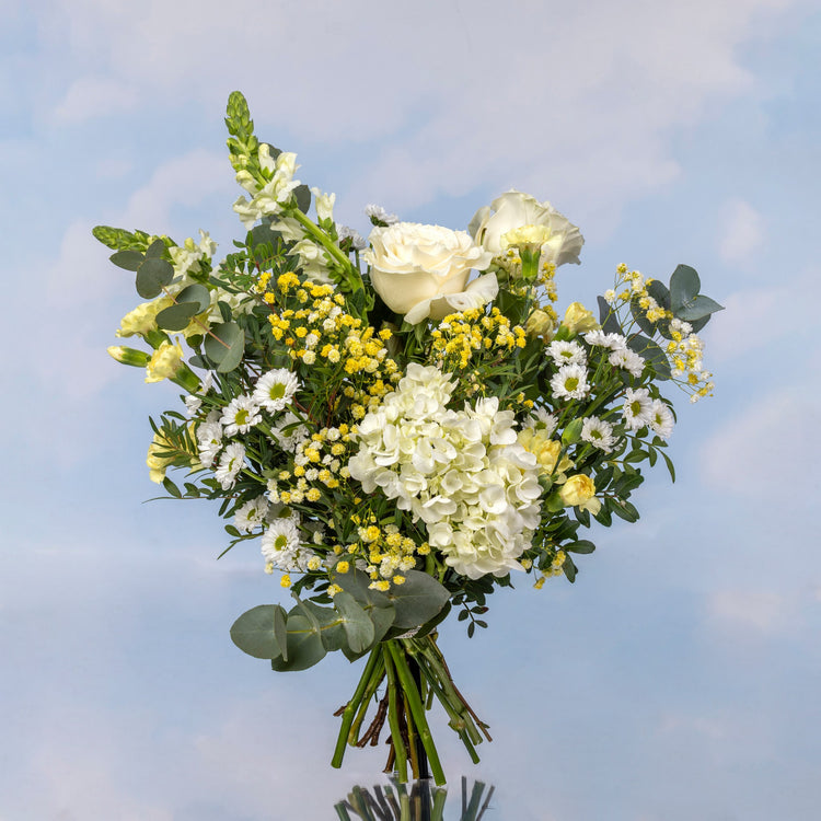 Nuestros floristas han seleccionado cada tallo para crear una composición armónica y equilibrada, perfecta para iluminar espacios interiores, acompañar momentos especiales o transmitir un mensaje de paz, claridad y buenos deseos. Su estética minimalista, moderna y atemporal lo convierte en un detalle perfecto para decorar el hogar durante los meses más fríos o regalar a alguien que necesite un toque de luz y calma.