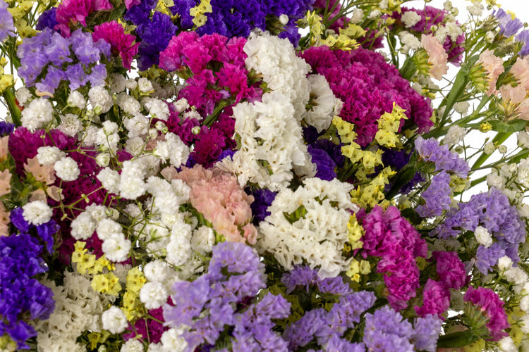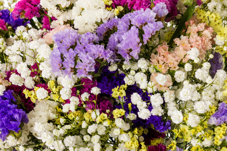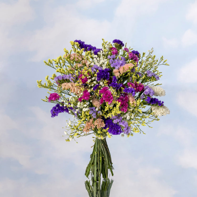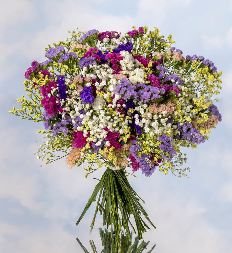 Descubre la belleza duradera con la colección de ramos de siemprevivas y limonium de Mon Parnasse.